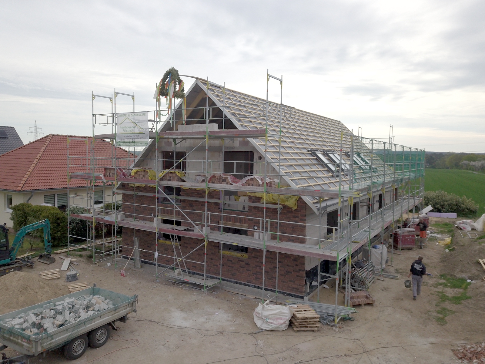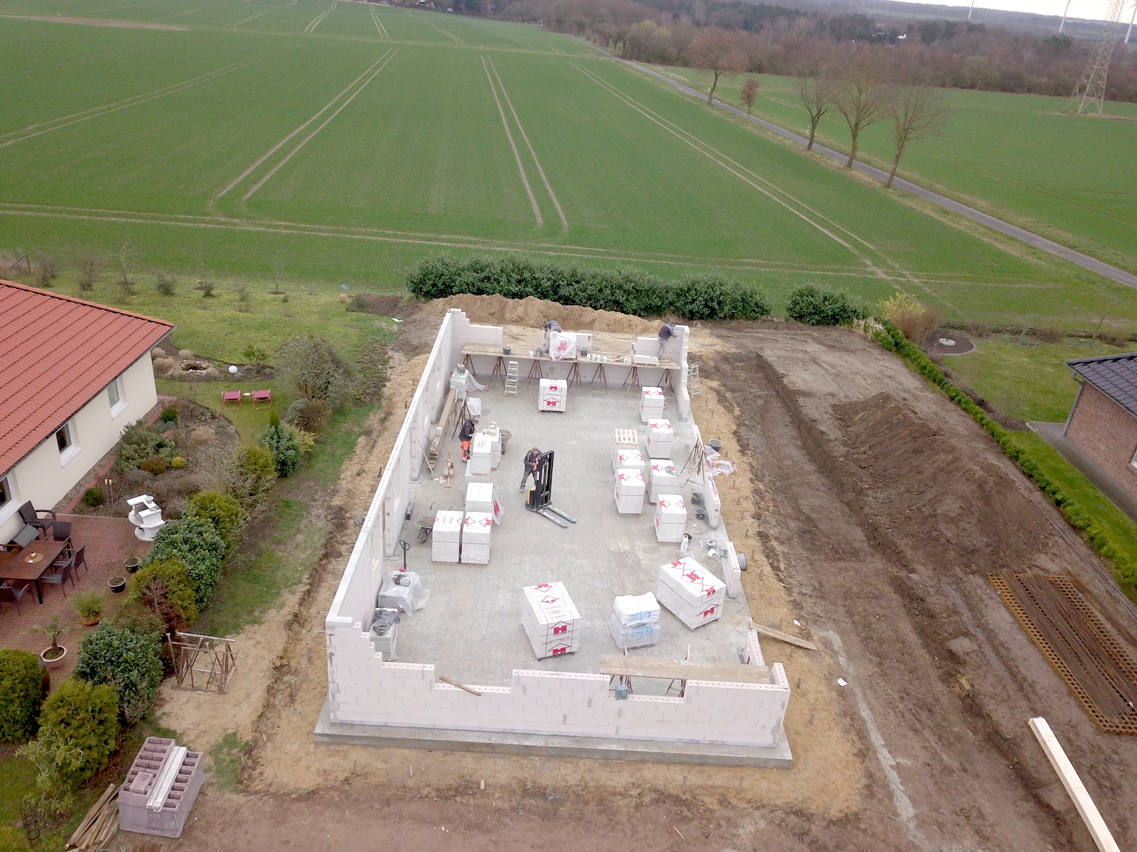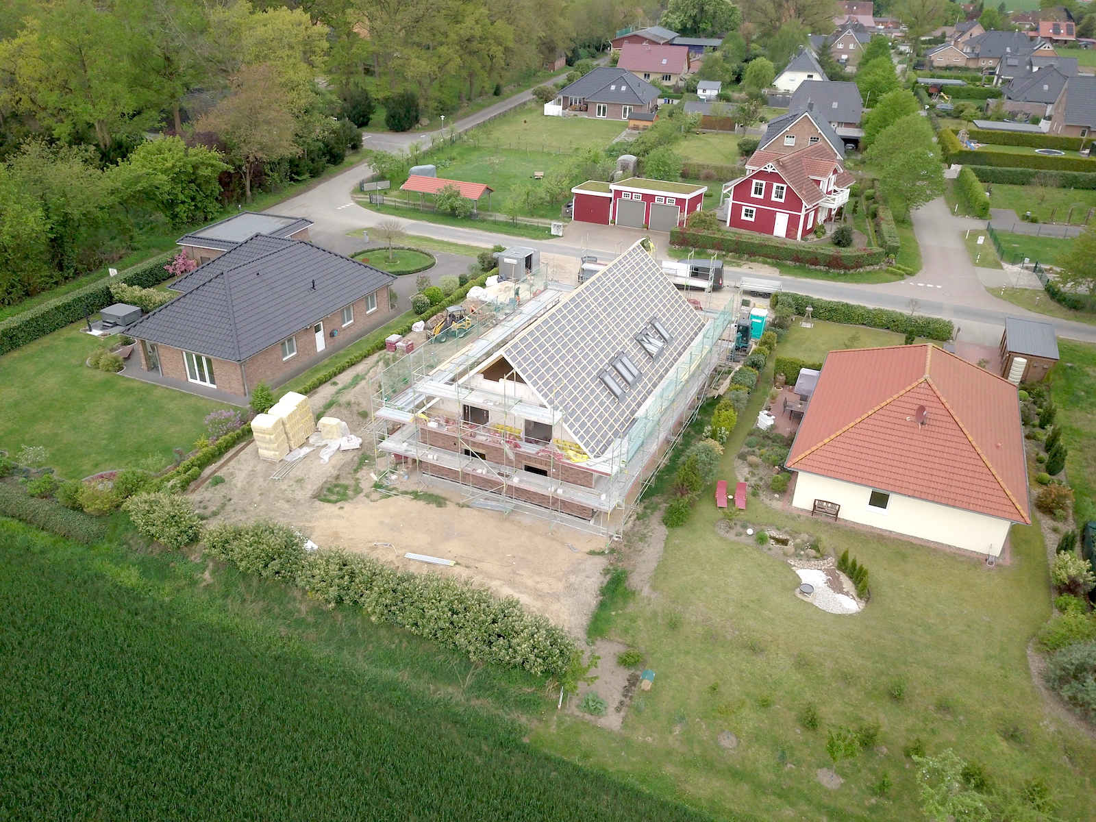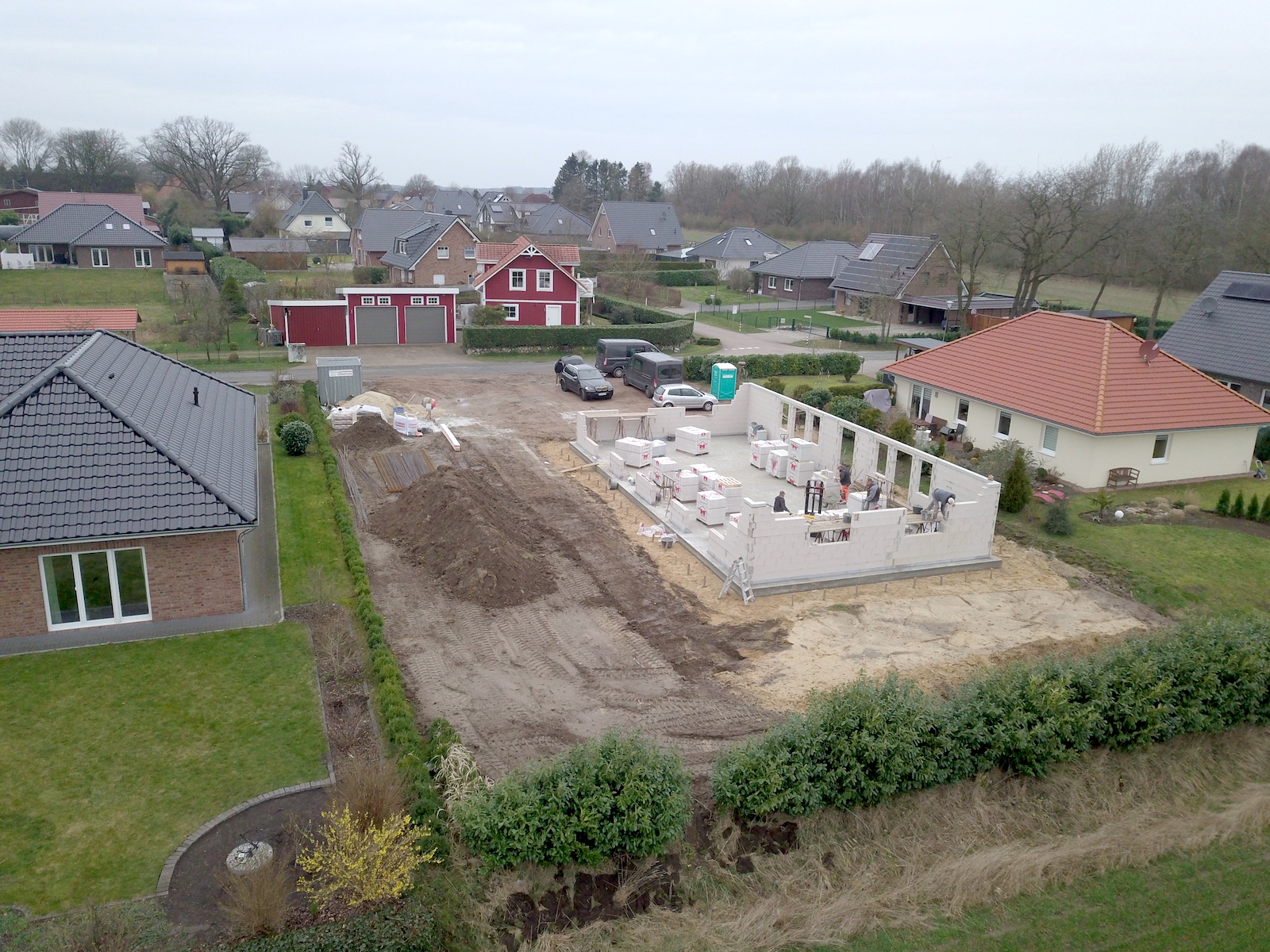 Bei dem Bauvorhaben handelt es sich um einen Neubau eines Zweifamilienhauses mit einer Carportanlage für vier Autos und zwei Abstellräumen. Das Carport erhält ein begrüntes Flachdach.