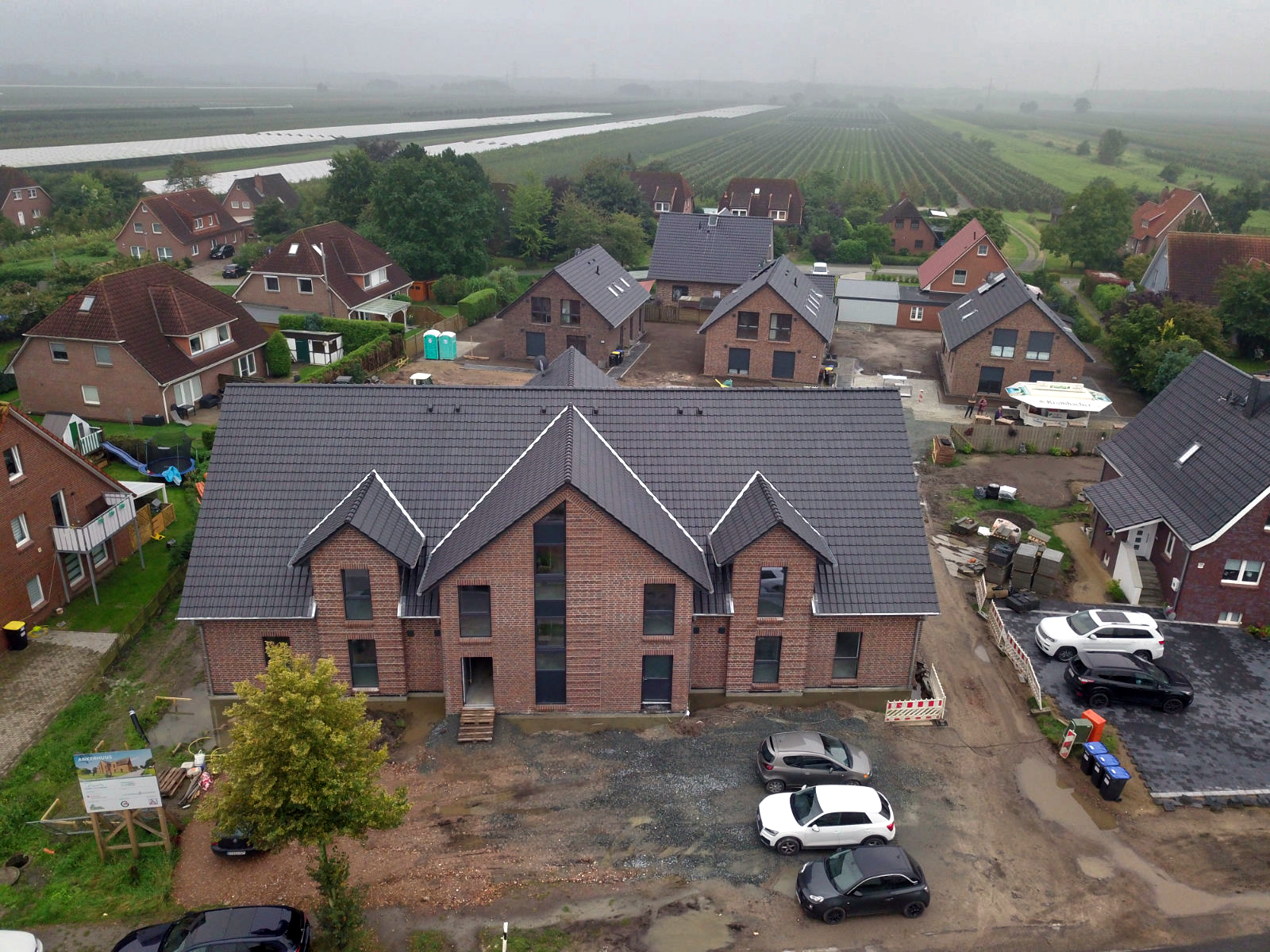 In Hollern-Twielenfleth soll ein Mehrfamilienhaus mit 8 Wohneinheiten nach Massivbauweise als KfW 55 Haus, mit kontrollierter Zu- und Abluft, entstehen. Außerdem entstehen hier drei weitere Einfamilienhäuser mit zwei Wohneinheiten.