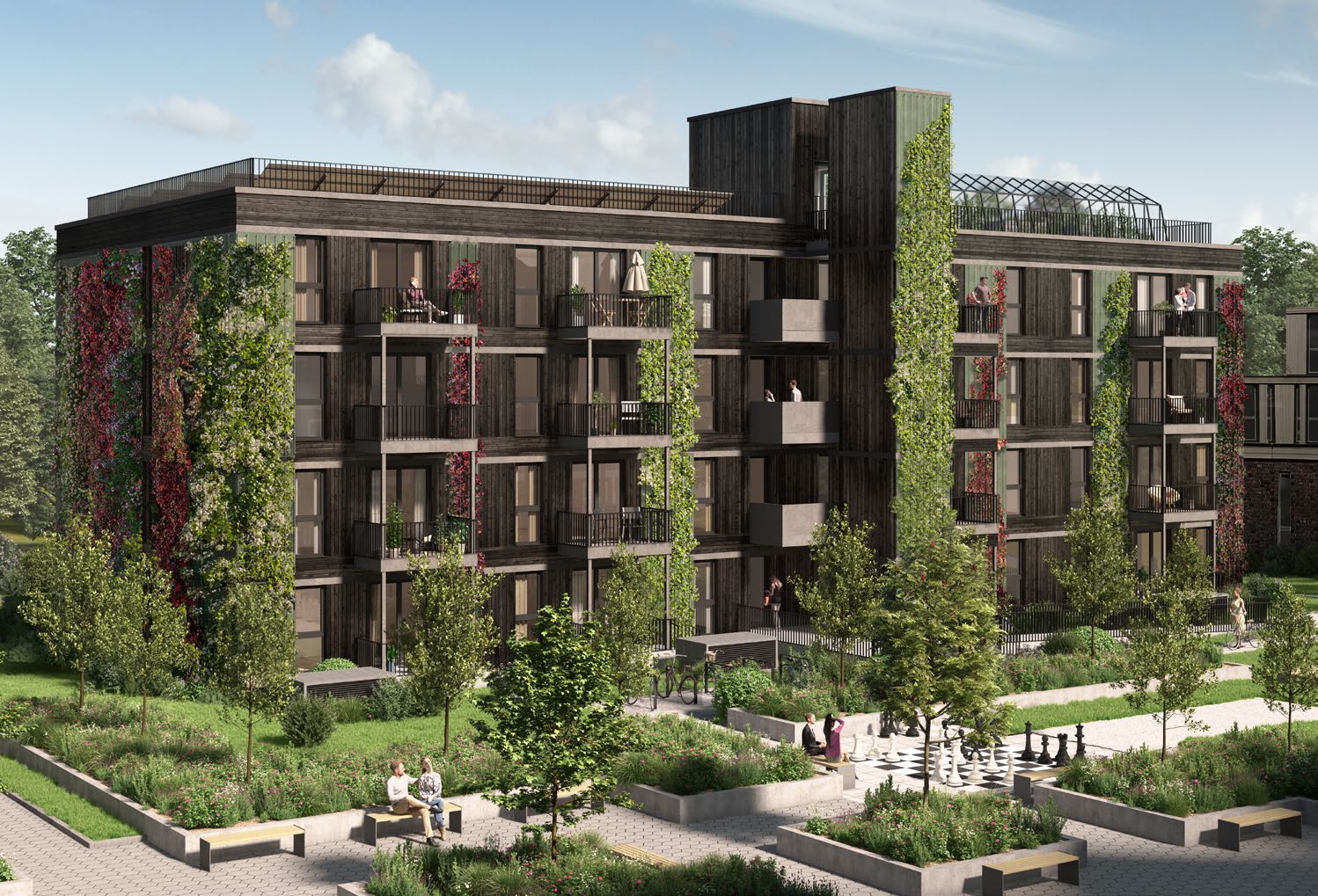 Ausführungsplanung und Bauleitung eines MFH mit 40 Wohneinheiten in der Holz Hybrith Bauweise.