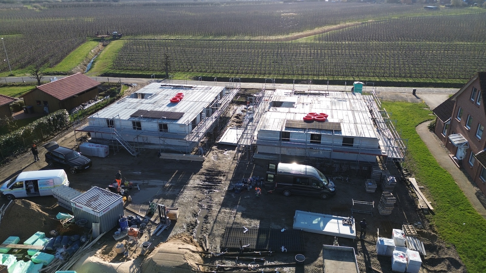 Neubau von zwei Mehrfamilienhäusern mit jeweils vier Wohneinheiten im KfW-40-QNG-Standard nach den Vorgaben von BIRN.