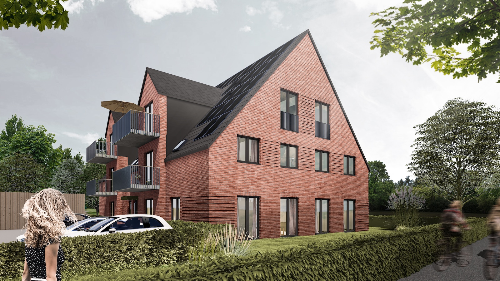 Am Blütenweg 2 in Jork entsteht ein modernes Mehrfamilienhaus mit 10 Wohneinheiten in klarer, zeitgemäßer Architektursprache. Das Gebäude wird nach dem Effizienzhausstandard KfW 40 realisiert und erhält eine QNG-Zertifizierung. So verbindet das Projekt nachhaltige Bauweise, hohe Energieeffizienz und anspruchsvolle Gestaltung.